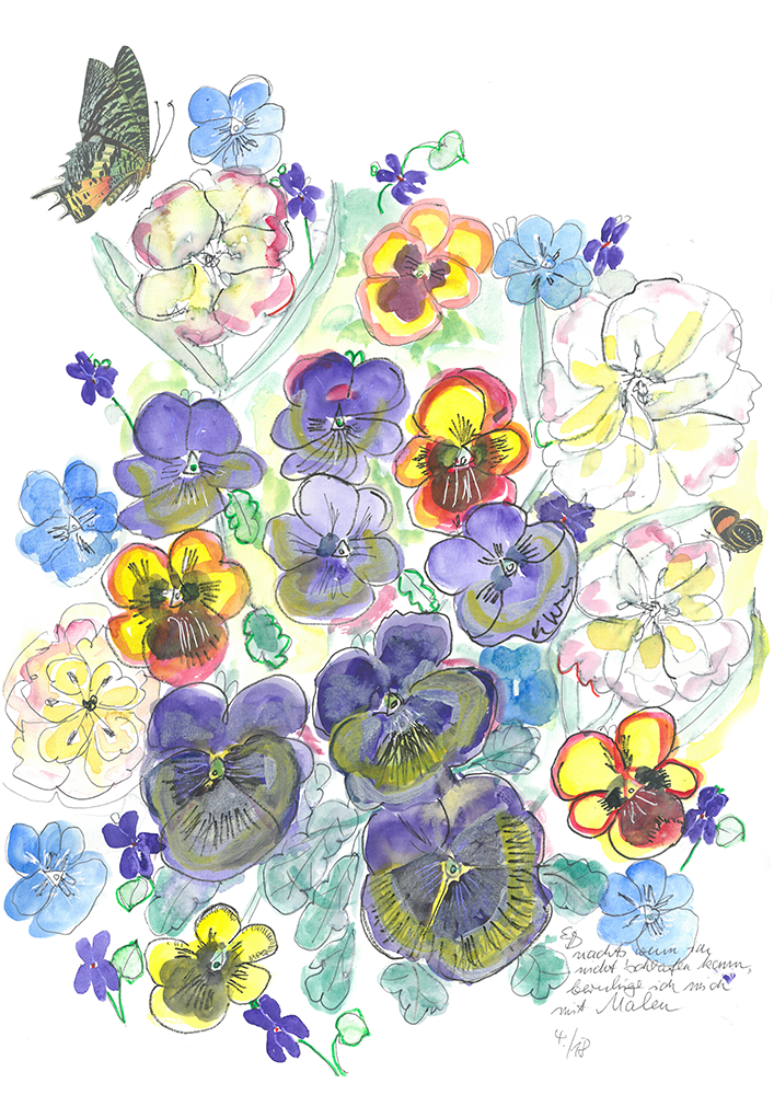 nun greift die seniorin tagtäglich zu zeichenblock, pinsel und farbe und schafft bilder für sich und zur freude anderer, jeden tag eines. die präzision, mit der frau richter ihre beobachtungen zu papier bringt, führt sie auf ihre ausbildung als buchbinderin und -restauratorin zurück, durch die ihr auge für feinheiten geschult ist. im gespräch wird deutlich, wie viel kraft sie aus ihrem kreativen schaffen schöpft: „die malerei ist für mich manchmal auch wie eine therapie“, sagt sie. unverkennbar ist zudem die große innere freude, die sie beim anblick der schönheiten der natur verspürt, die sie an einem sonnigen frühlingstag nach draußen treibt – und die ganz deutlich aus ihren bildern spricht.