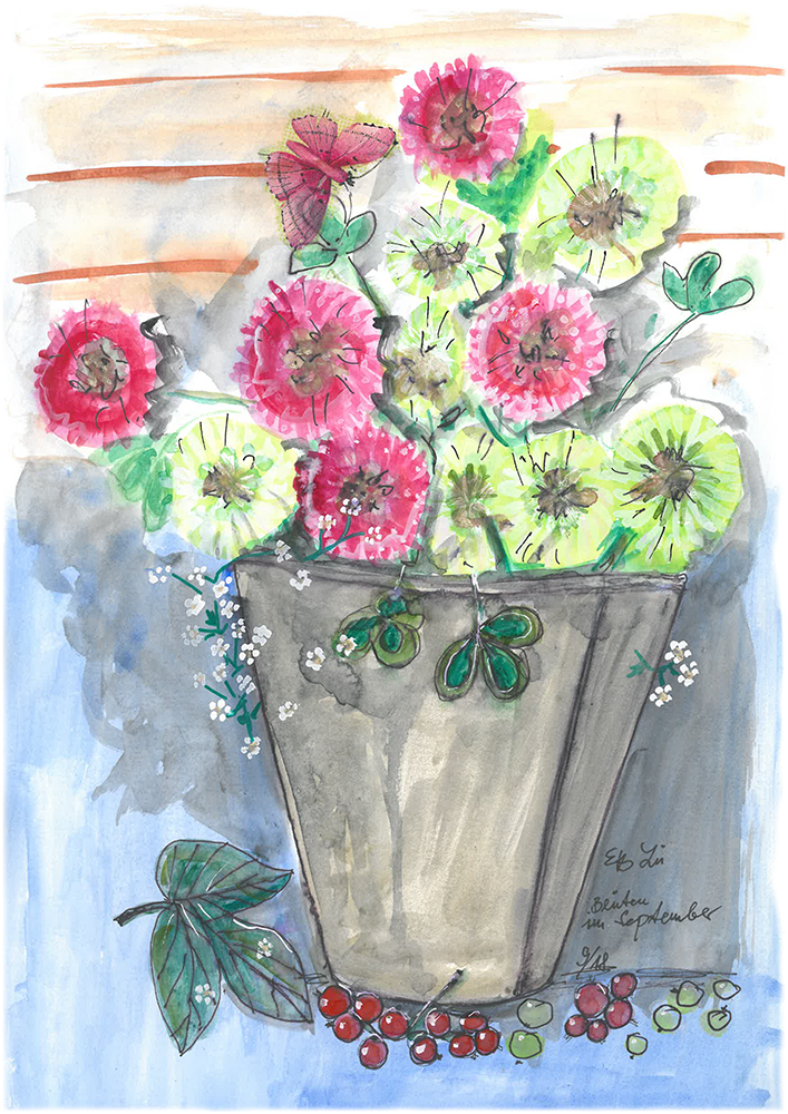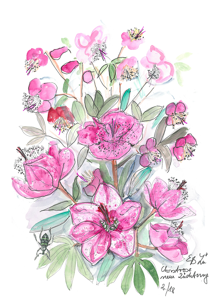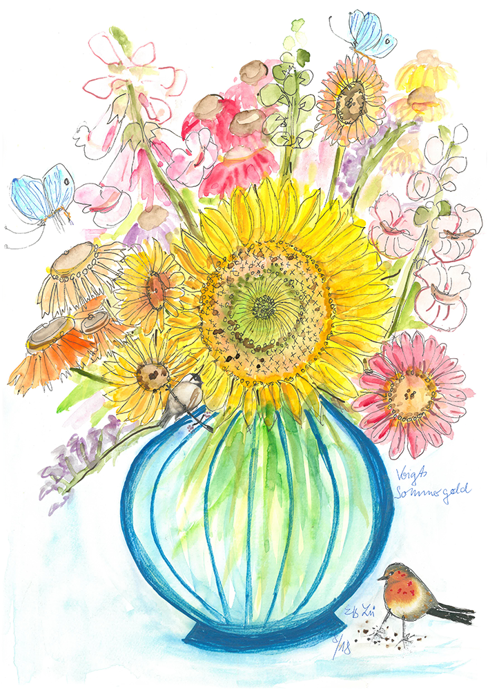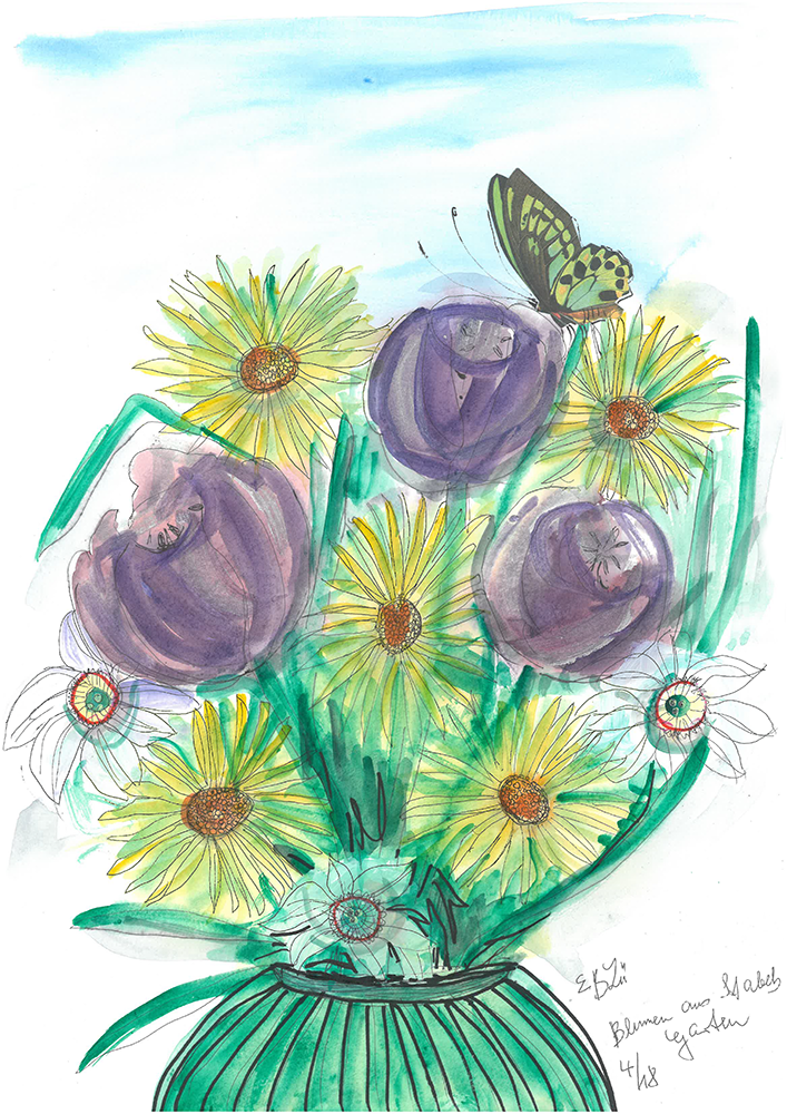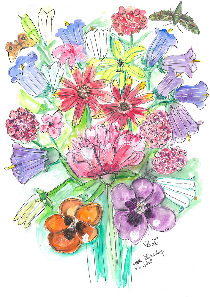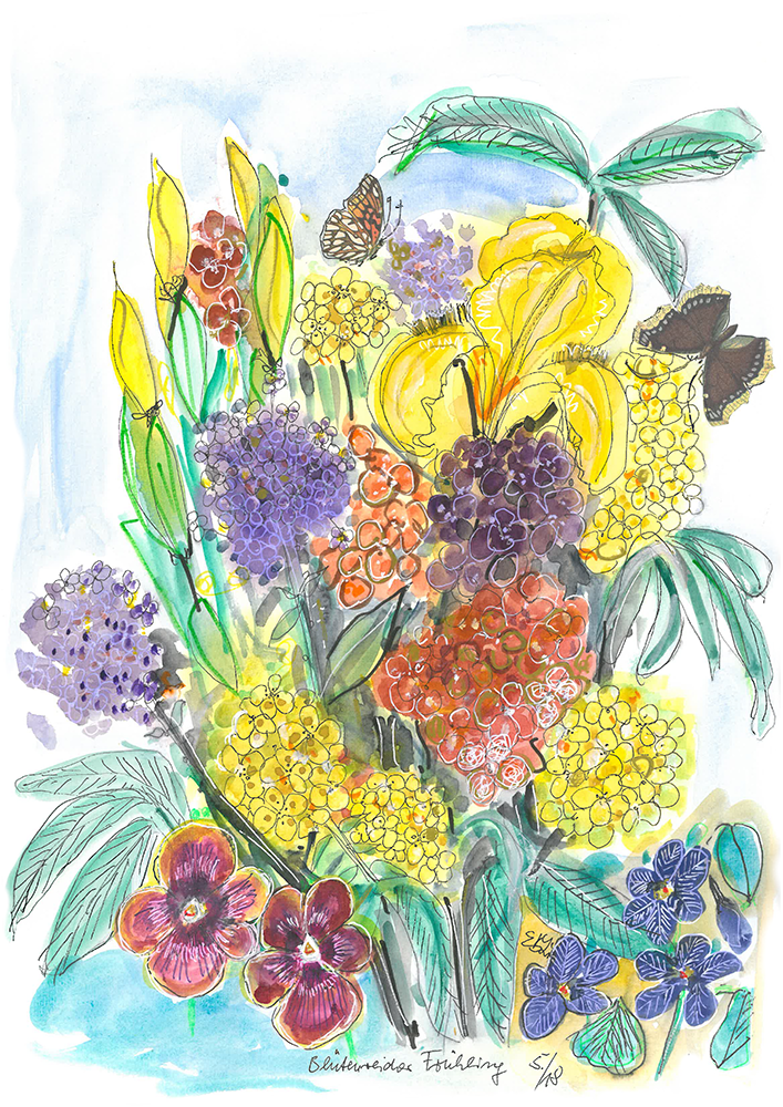 im frühlingsmonat mai eröffneten wir ausstellung no. 6 mit aquarellen von eva brigitte richter. gezeigt wurden sowohl originale der gelernten buchbinderin als auch vergrößerte reproduktionen in fine art-qualität. bis zum 22. juni ließen sich etwa 80 besucher von den farbenprächtigen blumenstillleben „auftauen“ und von der lebensfreude der bilder anstecken.
