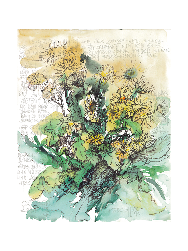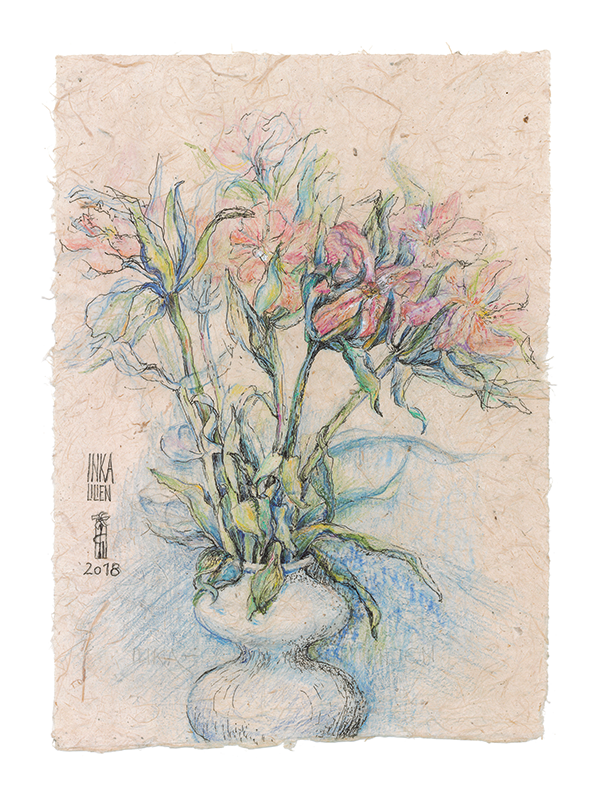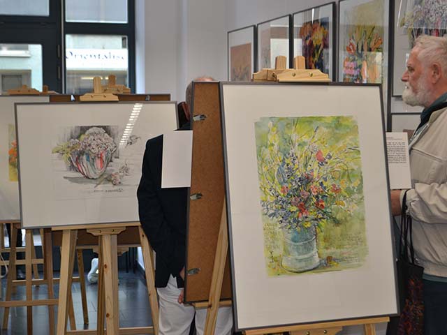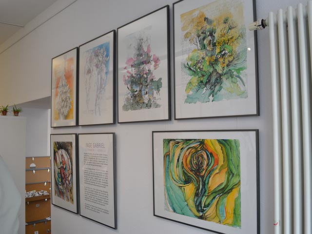 zeichnungen und aquarelle von inge gabriel waren von ende september bis ende oktober in unserer ausstellung no. 10 zu sehen. etwa 90 besucher erfreuten sich beispielsweise an eleganten inka-lilien, an glockenreben und der weihnachtsbraut, die immer zu pünktlich zu weihnachten prächtige blütentrauben trägt. durch die „bildgeschichten“ zu ihren werken brachte die künstlerin den betrachtern ihre erlebnisse, gefühle und assoziationen nahe.